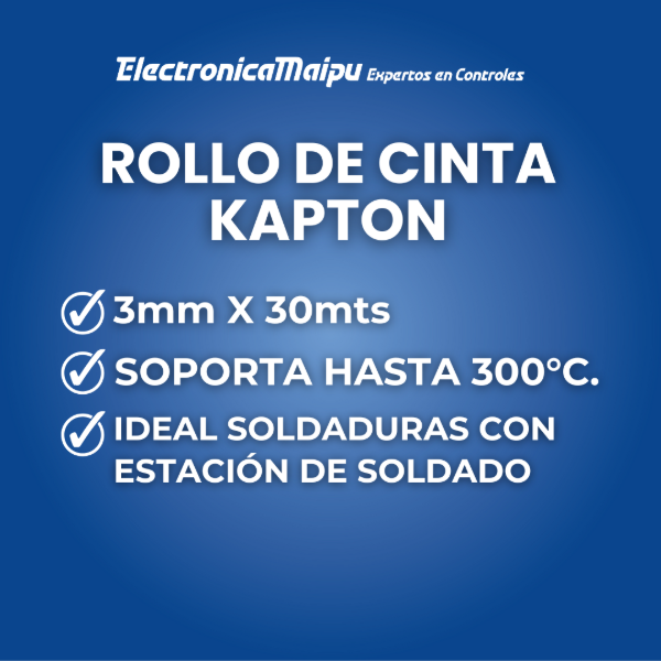 ¡Protección térmica de nivel profesional! 🔥 La Cinta Kapton es tu escudo de confianza contra el calor extremo. Ideal para trabajos de soldadura, protege componentes sensibles y circuitos de las altas temperaturas sin dejar residuos. ¡Máxima adherencia y resistencia insuperable!