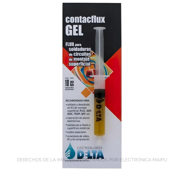 El Flux en Gel Jeringa Delta es un producto diseñado para mejorar la calidad de las soldaduras en circuitos electrónicos. Aquí tienes sus principales características: